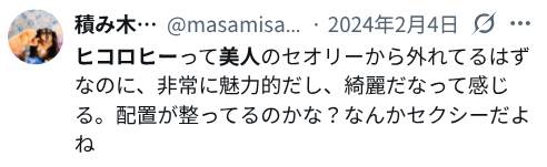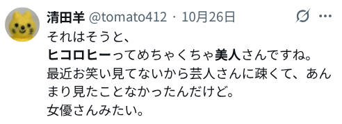 反対に、ヒコロヒーさんのことを「カワイイ」「美人」といった声も多くあるようですよ。⇓⇓