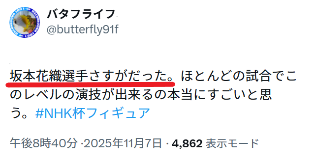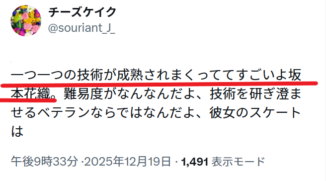 SNSでは、坂本選手の技術の高さや実力のすごさについて投稿されてていました。