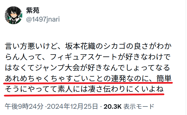確かにフィギュアをあまり知らないと、坂本選手のすごさがあまり分からないかもしてないね…