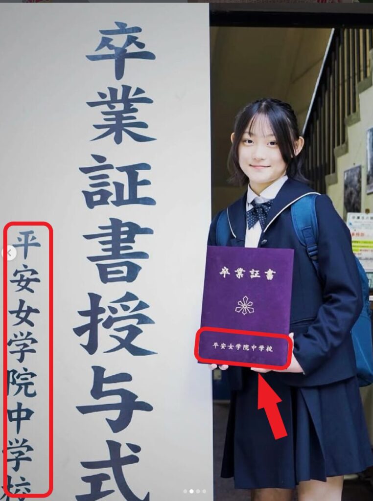 2022年4月に平安女学院中学校へ入学し、2025年3月に卒業されています。