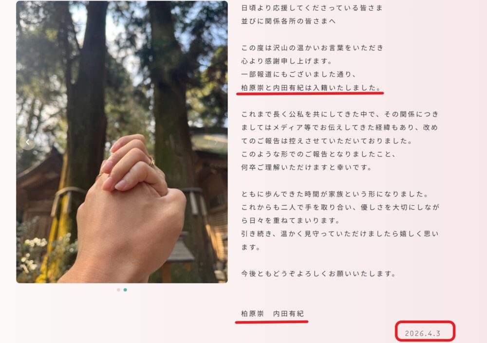 2026年4月に結婚を発表。